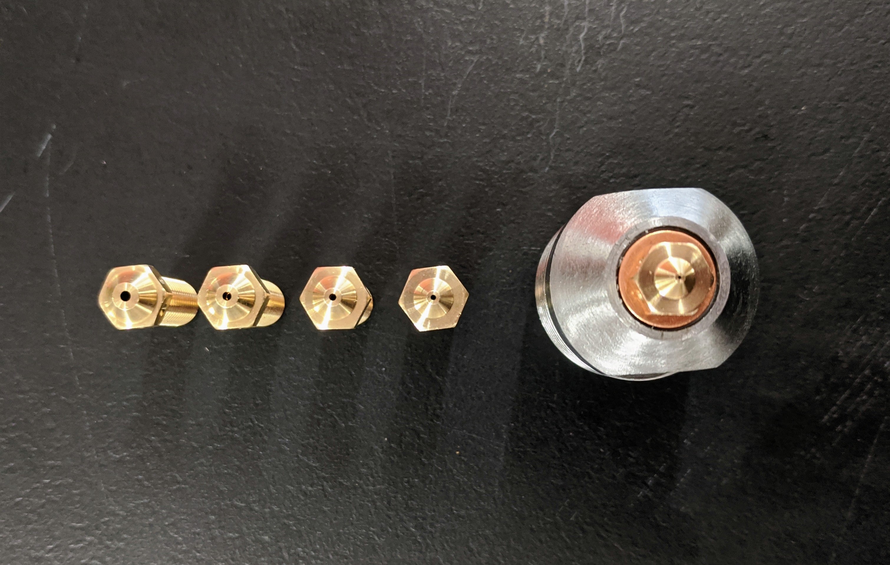 Extruder Nozzles - Various nozzle options and sizes are available to fit your printing application- everything from 0.4mm up to 8mm.